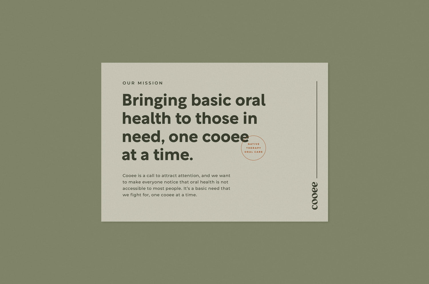 The word cooee originates from the Dharug language of Aboriginal people. It means “come here” and is now widely used in Australia as a call over distances to attract attention. Cooee is all about sustainably-sourced materials and native Australian ingredients, combined to enhance oral care through simple yet powerful products.