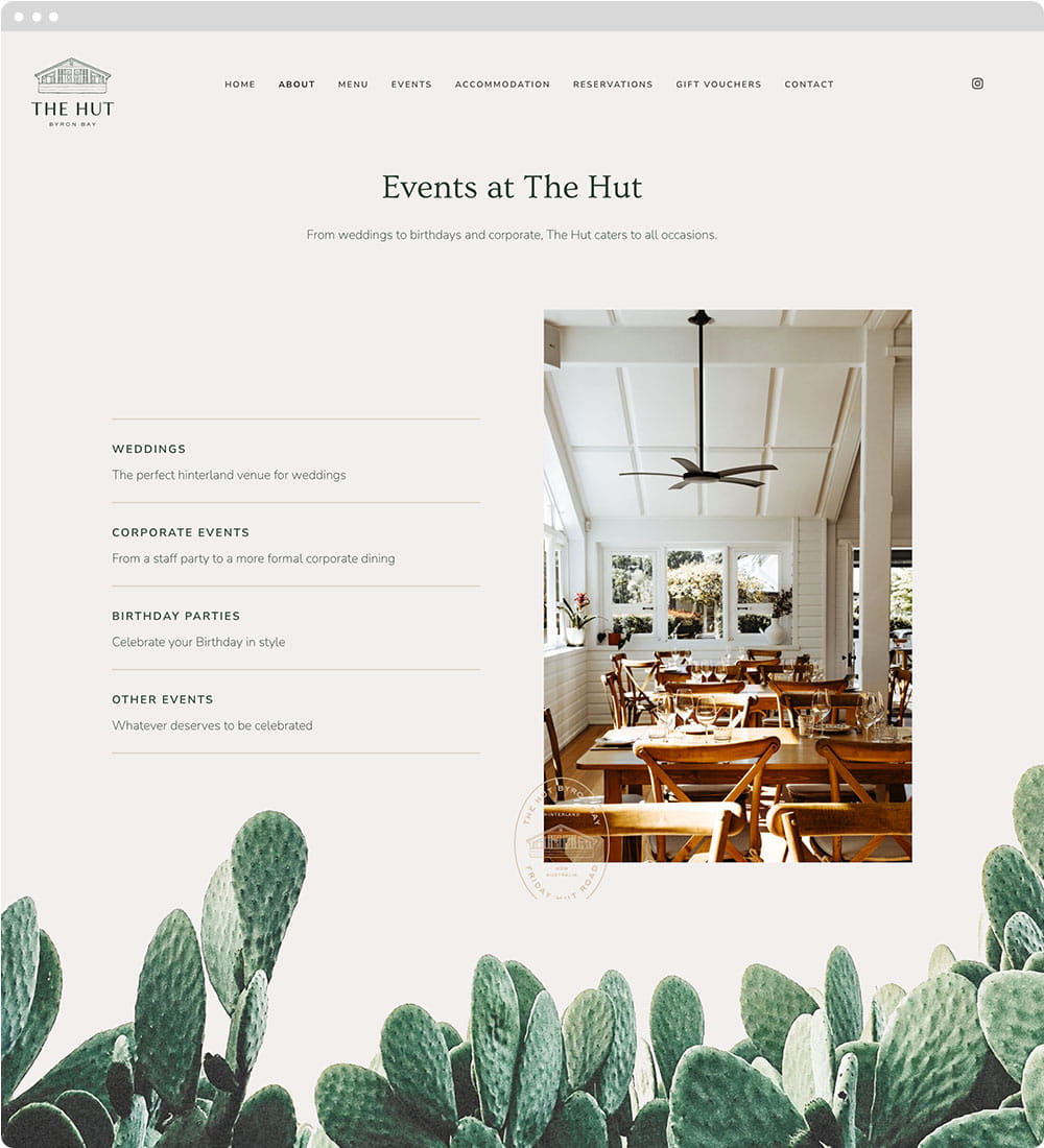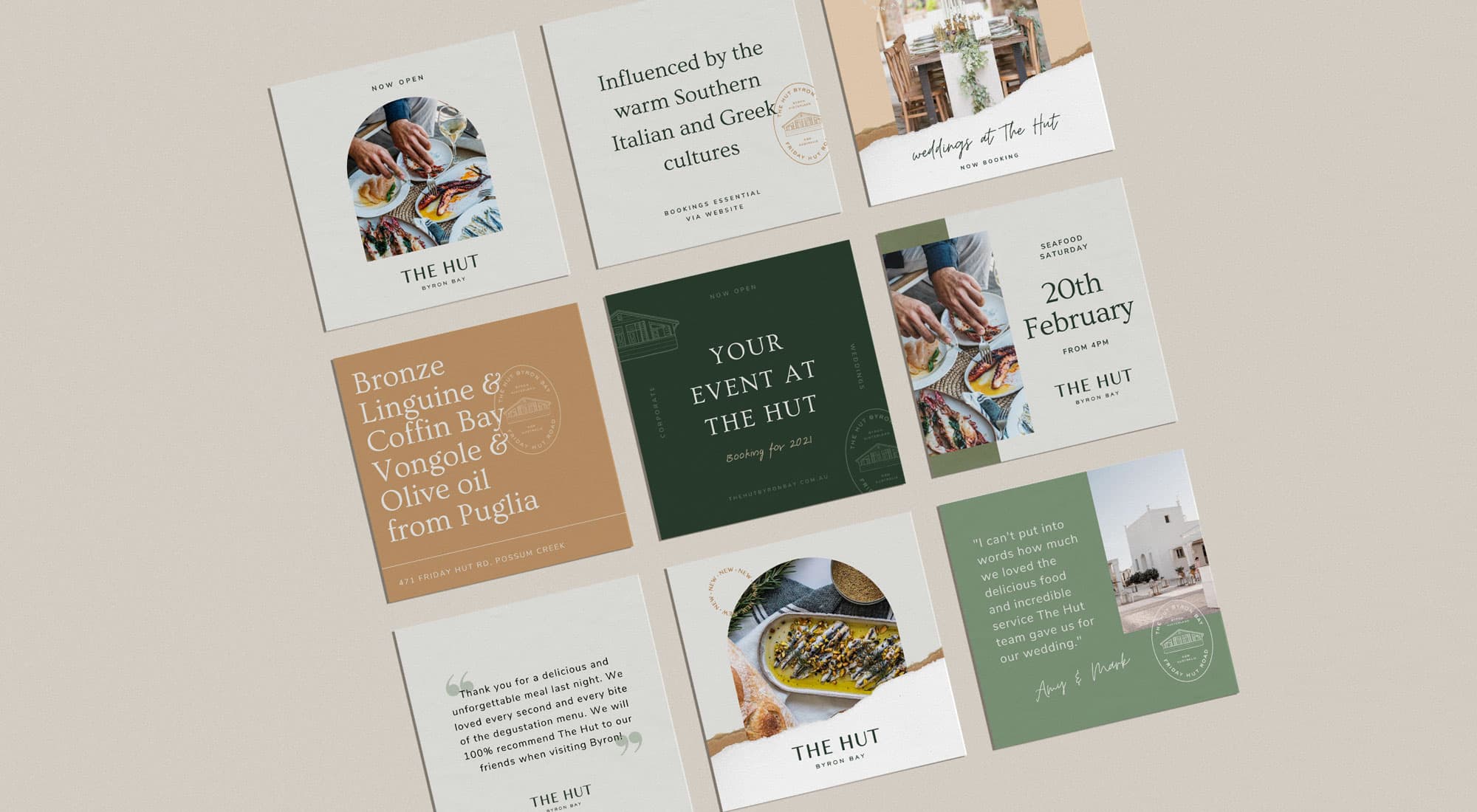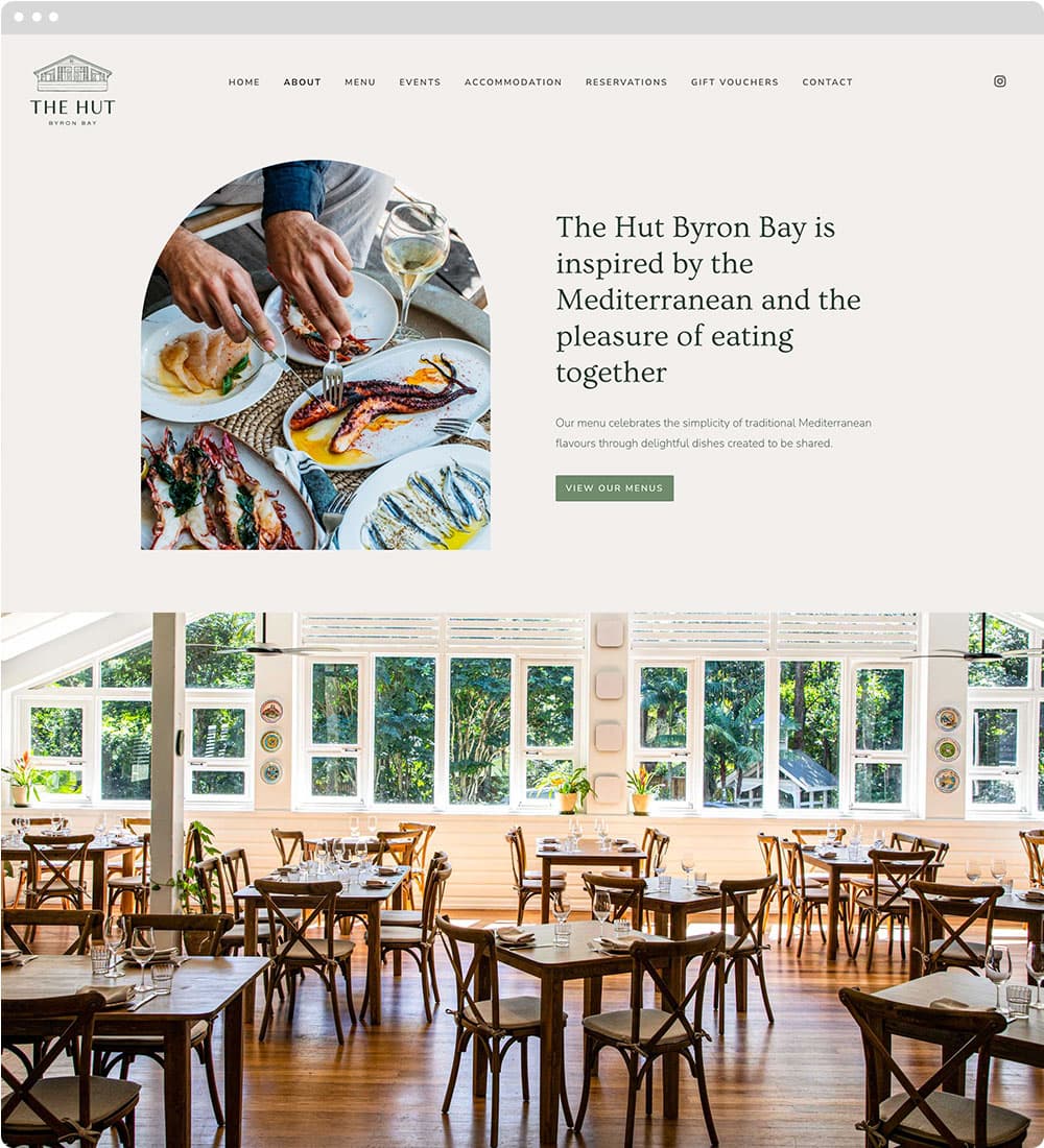 Influenced by the warm Southern Italian and Greek cultures, The Hut offers a flavourful Mediterranean-inspired menu with fresh and local ingredients. Surrounded by nature in the stunning Friday Hut hinterland venue, the logo showcases the historic Possum Creek schoolhouse facade, where the restaurant is set.